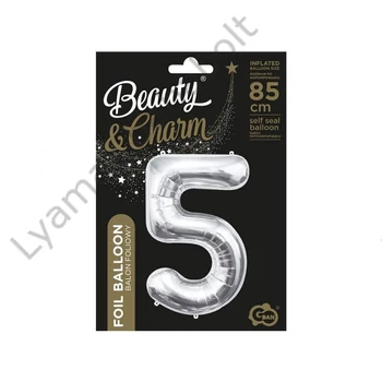 Silver, Ezüst 5-ös szám fólia lufi 85 cm