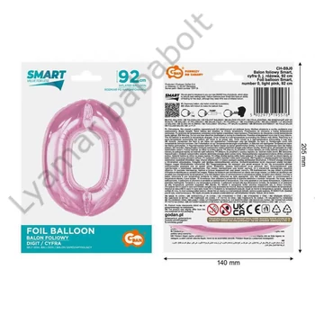 Rózsaszín 0-ás Light Pink szám fólia lufi 92 cm