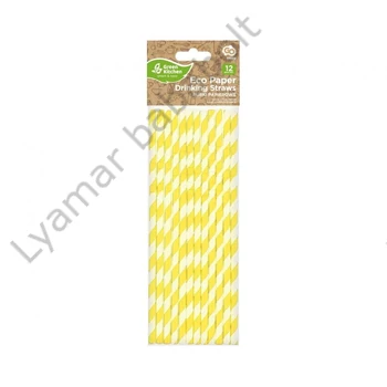 Sárga Yellow Stripes rugalmas papír szívószál 12 db-os