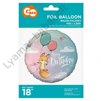 Róka Happy Birthday Fox fólia lufi 36 cm