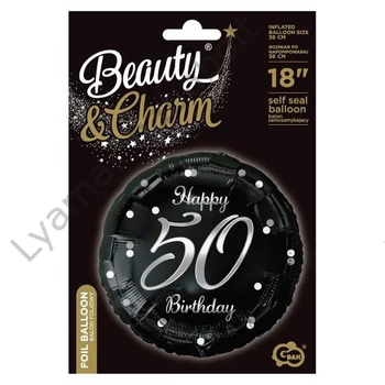 Happy Birthday 50 B&C Silver fólia lufi 36 cm
