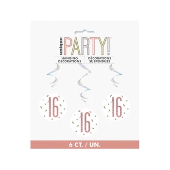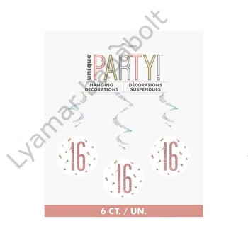 Happy Birthday 16 Holographic szalag dekoráció 6 db-os szett