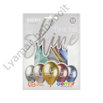 Happy Birthday Shiny léggömb, lufi 5 db-os 13 inch (33 cm)