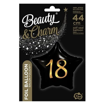 Fekete Happy Birthday 18 Black csillag fólia lufi 44 cm