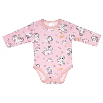 Hosszú ujjú baba body unikornis mintával A hosszú ujjú baba body unikornis mintával tökéletes választás a kis hercegnőknek! A színes, játékos minta azonnal felkelti a kicsik figyelmét, míg a vállon található patentok segítségével könnyedén fel- és levehető a ruha. A body 100% pamutból készült, így garantáltan kényelmes viselet a nap bármely szakában. Az I. osztályú minőségű body nem csak strapabíró, de a benne található nikkelmentes patentnak köszönhetően az allergiára hajlamos babák számára is biztonságos választás. Bízd a minőségre a babád kényelmét! |
