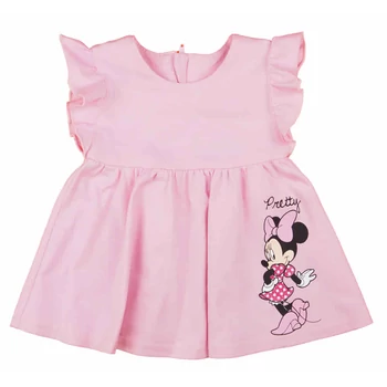 Egy igazi lányos álom ez a fodros ujjú nyári ruha! A rózsaszín színvilágban pompázó ruhácska a meleg nyári napokon is tökéletes választás lesz kislányodnak. A könnyedén viselhető, 100% pamutból készült nyári ruha az elején vidám Minnie egér mintával díszített, mely minden kislányt elvarázsol. A fodros-virágos szoknyarész és a színben harmonizáló szalag igazán csinossá teszi a ruhát, így garantáltan minden szem rajta lesz. Eredeti Disney termék, minőségi magyar munka, amelyben kislányod kényelmesen és boldogan fogja tölteni a nyári napokat. Anyagösszetétel: 90% pamut, 10% elasztán, így a ruha nem csak szép, de rendkívül kényelmes is. Minőségi I. osztályú termék.