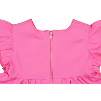 A világos pink fodros ujjú kislány nyári ruha, amely Minnie egér mintával van díszítve, tökéletes választás a forró nyári napokra. Az eredeti Disney termék, könnyű, 100% pamut anyagának köszönhetően ideális viselet a melegben, míg a fodros-virágos szoknyarész és a vidám Minnie egér minta az elején igazi örömöt szerez a kislányoknak. A színben harmonizáló szalag tovább fokozza a ruha csinos megjelenését. Könnyen kezelhető, minőségi magyar termék, melynek anyaga 90% pamut és 10% elasztán. A ruha színe világos rózsaszín, ami bármilyen nyári napot vidámmá varázsol. Az I. osztályú minőségű ruha biztosítja a tartósságot és a kényelmet.