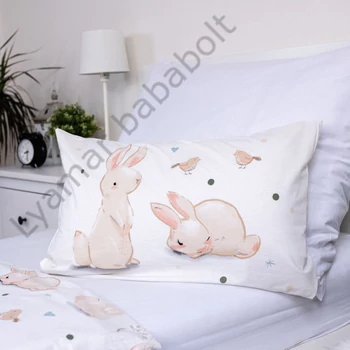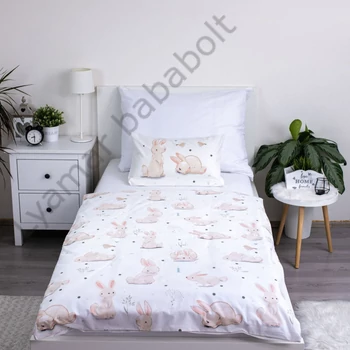 • 1 db bájos, akvarell stílusú nyuszi mintás takaróhuzat (100x135 cm).