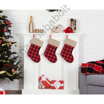 Kockás Chequered karácsonyi kandalló zokni, csizma 40,5 cm