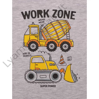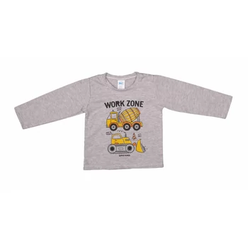Hosszú ujjú fiú póló Munkagépes mintával Egy igazán csibészes megjelenést kölcsönözhet kisfiadnak ez a hosszú ujjú fiú póló, amelyen munkagép minta díszeleg. A szürke színű alapdarab kiválóan alkalmas óvodai napokra vagy játszótéri kalandokra. Kényelmes és praktikus viselet, ami egy farmernadrággal párosítva igazán ütős összhatást kelt. Készült minőségi, könnyen kezelhető, jól mosható, szín- és formatartó pamut anyagból, így garantáltan hosszú távú társ lesz a mindennapokban. Mint minden termékünk, ez is magyar minőségi termék, melynek anyaga 100% pamut, I. osztályú minőségben.