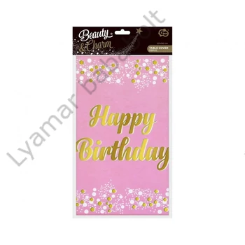 Rózsaszín Happy Birthday B&C Light Pink fólia asztalterítő 137x183 cm
