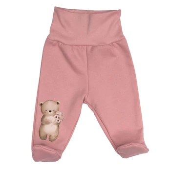 Belül bolyhos kislány baba nadrág macis mintával Puha, meleg és kényelmes - ez a belül bolyhos kislány baba nadrág a legjobb választás a hidegebb hónapokra. Púder színű nadrágban a kis huncutok ellenállhatatlanul cukik lesznek, míg a macis minta még a legkomorabb napokon is mosolyt csal az arcukra. Az elasztikus gumis derék könnyen alkalmazkodik a babák mozgásához, biztosítva a tökéletes illeszkedést és kényelmet. A lábfejes kialakítás pedig segít megtartani a meleget a kicsik lábán. Könnyen kezelhető, szín- és formatartó minőségi anyagból készült, így tökéletes választás azok számára, akik szeretnének egy praktikus, mégis stílusos darabot a babájuk szekrényébe. Könnyen kezelhető és mosható, szín- és formaálló. I. osztályú minőségű, kiváló magyar termék. Anyaga 65% pamut és 35% poliészter