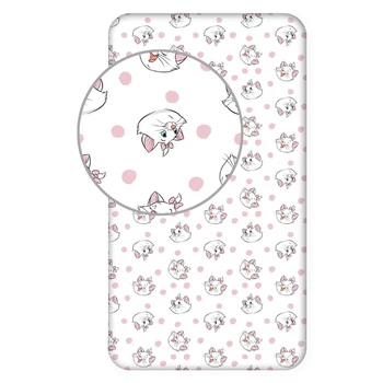 | Bájos Disney Marie "Gentle" gyerek gumis lepedő 90x200 cm. Fehér alapon, Marie cica aranyos feje, rózsaszín pöttyök és masnik mintával. 100% puha pamut gumis lepedő 90x200, körben gumírozott a stabil illeszkedésért. | |