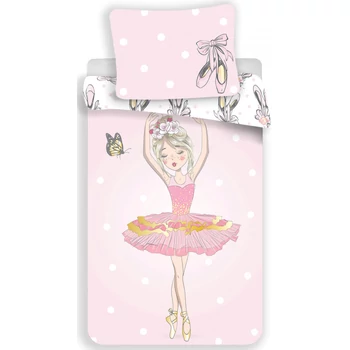 Balett mintás pamut ágyneműhuzat. A 140x200 cm-s felnőtt méretű pamut ágyneműhuzat kiváló minőségű, színtartó pamut anyagból készült, gyönyörű, ellentmondást nem tűrő nyomástechnikával. Az ágynemű a képen látható mintát adja vissza teljes egészében. |