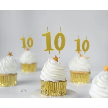 Arany Metallic számgyertya, tortagyertya 0-ás