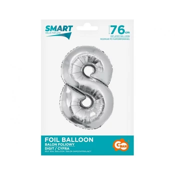 Ezüst 8-as Silver szám fólia lufi 76 cm