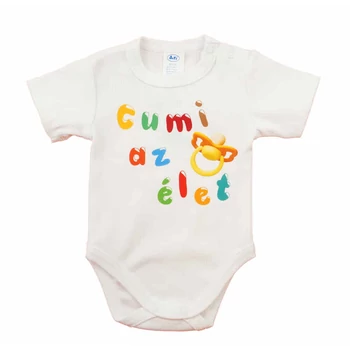 Feliratos rövid ujjú baba body Ezzel a vállon patentos baba bodyval a kisbabád mindig stílusos lesz. A body feliratos, ami egyszerre vicces és aranyos. A nikkelmentes patentoknak köszönhetően nem kell aggódnod az allergiás reakciók miatt. Gondosan tervezett és készített termék, így biztos lehetsz benne, hogy a legjobbat kapod. A minőségi magyar termék, ami tökéletes választás minden unisex babáknak. Tökéletes választás, ha szeretnél egy igazán minőségi és kényelmes ruhadarabot a babádnak. Minőségi magyar termék Anyaga: 90% pamut – 10% lycra Minőség: I. osztály