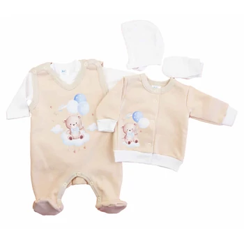 5 részes belül bolyhos kisfiú baba szett Macis mintával Nagyon cuki ez a 5 részes szett, ami egy kocsikabátot, egy ujjatlan rugdalózót, egy hosszú ujjú bodyt, egy csecsemősapit, és egy kis baba kesztyűt tartalmazz. Bababarát, könnyen kezelhető pamut anyagból készült. Jól mosható, szín- és formatartó anyaga miatt garantáltan az anyukák kedvence is lesz! Minőségi magyar termék Kocsikabát és a rugi anyaga: 65% pamut, 35% poliészter Kombi+sapi+Kesztyű anyaga 100% pamut Minőség: I. osztály A termék nikkelmentes patenttal készül. A patent nem tartalmaz nikkelt, ezért nem vált ki allergiás reakciót az erre érzékeny babáknál.