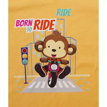 Rövid ujjú póló, Majmos mintával Ez a rövid ujjú kisfiú póló kiváló minőségű, 100% pamut anyagból készült, amely kellemesen puha és légáteresztő, így egész nap kényelmes viseletet biztosít. Klasszikus szabása és laza fazonja miatt könnyű benne a mozgás, így ideális aktív gyerekek számára. Formatartó kialakítása garantálja, hogy mosás után is megőrzi alakját és színét. A vidám minta játékosságot csempész a mindennapi öltözködésbe. Könnyen kezelhető és strapabíró, így tökéletes választás minden kis kalandor számára! Anyaga: 100% Pamut Minőség: I. osztály Minőségi magyar termék!