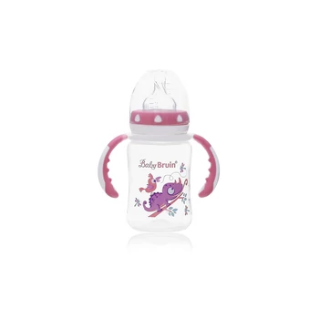 BabyBruin széles nyakú cumisüveg fogóval 240 ml rózsa