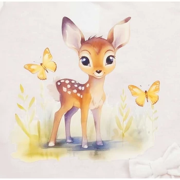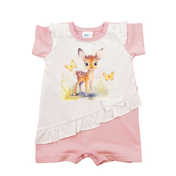 Rövid ujjú kislány baba napozó - őzike mintával
