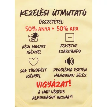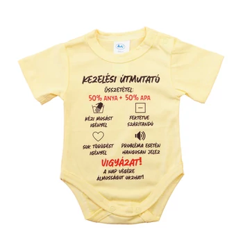 Feliratos rövid ujjú baba body Ezzel a vállon patentos baba bodyval a kisbabád mindig stílusos lesz. A body feliratos, ami egyszerre vicces és aranyos. A 100% pamut anyaga garantálja a kényelmet, és a nikkelmentes patentoknak köszönhetően nem kell aggódnod az allergiás reakciók miatt. Gondosan tervezett és készített termék, így biztos lehetsz benne, hogy a legjobbat kapod. A minőségi magyar termék, ami tökéletes választás minden unisex babáknak. Tökéletes választás, ha szeretnél egy igazán minőségi és kényelmes ruhadarabot a babádnak. Minőségi magyar termék Anyaga: 100% pamut, Minőség: I. osztály