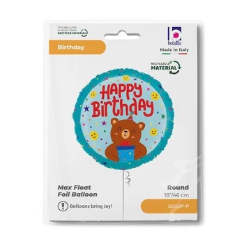 Happy Birthday Smiley Bear fólia lufi 46 cm