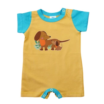 Rövid ujjú napozó pamut anyagból Tacskó mintával A baba bőrének kényeztetésére készült ez a rövid ujjú napozó, mely puha, 100% pamut anyagból készültA rugalmas anyag tökéletesen követi a baba mozgását, így gondoskodik a szabad és kényelmes mozgásról. A vállán és a lába között található patentok megkönnyítik az öltöztetést és a peluscserét. Nikkelmentes patentjával pedig biztosítja, hogy a baba bőre ne legyen ki téve az allergiás reakcióknak. A napozó büszkén viseli a "Made in Hungary" címkét, így nem csak a babád, de a hazai termékek iránti elkötelezettséged is megmutathatod vele. Minőségi magyar termék Anyaga: 100% pamut Minőség: I. osztály A termék nikkelmentes patenttal készül. A patent nem tartalmaz nikkelt, ezért nem vált ki allergiás reakciót az erre érzékeny babáknál.