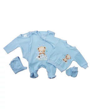 5 részes baba szett macis mintával A szettben található egy cuki ujjatlan rugdalózó, melynek vállán praktikus patent segíti az öltöztetést, valamint a mintáját egy vidám minta díszíti. Ezenkívül a csomag tartalmaz egy kényelmes, hosszú ujjú bababody-t is, mely szintén vállon patentos kialakítású. Továbbá egy elöl patentos kocsikabátot is találunk a szettben, melyen szintén a vidám minta kapott helyet. De a csomag még nem ért véget! Egy baba sapkát és egy pár babakesztyűt is talál benne, hogy a kicsi feje és keze is mindig meleg legyen. Az összes termékben nikkelmentes patentokat használtunk, így azok nem váltanak ki allergiás reakciókat az erre érzékeny babáknál. Válassza ezt a minőségi, I. osztályú magyar terméket, hogy babája mindig stílusos és kényelmes legyen! Magyar termék Anyaga: 100% pamut Minőség: I. osztály