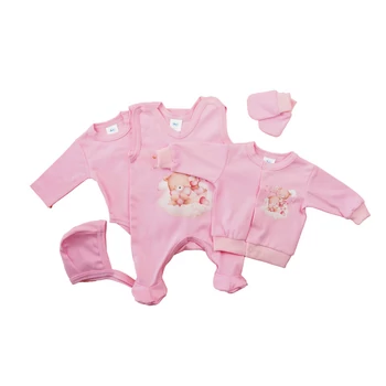 5 részes baba szett macis mintával A szettben található egy cuki ujjatlan rugdalózó, melynek vállán praktikus patent segíti az öltöztetést, valamint a mintáját egy vidám minta díszíti. Ezenkívül a csomag tartalmaz egy kényelmes, hosszú ujjú bababody-t is, mely szintén vállon patentos kialakítású. Továbbá egy elöl patentos kocsikabátot is találunk a szettben, melyen szintén a vidám minta kapott helyet. De a csomag még nem ért véget! Egy baba sapkát és egy pár babakesztyűt is talál benne, hogy a kicsi feje és keze is mindig meleg legyen. Az összes termékben nikkelmentes patentokat használtunk, így azok nem váltanak ki allergiás reakciókat az erre érzékeny babáknál. Válassza ezt a minőségi, I. osztályú magyar terméket, hogy babája mindig stílusos és kényelmes legyen! Magyar termék Anyaga: 100% pamut Minőség: I. osztály