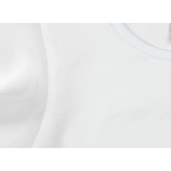 Fehér alkalmi fodros ujjú kislány felső Elasztikus fehér pamut anyagból, rövid muszlin fodros ujjal. Minőségi magyar termék Anyaga: 90% pamut, 10% elasztán Minőség: I.oszt. |