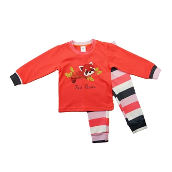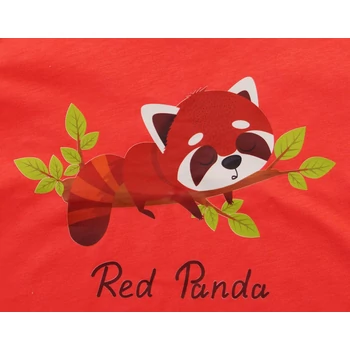Hosszú ujjú lányka pizsama - Vörös panda mintával