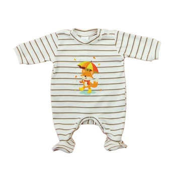 Vékony, pamut rugdalózó Praktikus és kényelmes viselet ez a csíkos alapayagól készült cuki mintával nyomott baba rugdalózó. Vállán patentos, így megkönnyíti a picik öltöztetését. A lába közötti patentos megoldás a peluscserénél nagy segítség Az egyik legjobb megoldás különösen újszülötteknél és az első néhány hónapban. Minőségi, 100% pamut bababarát anyagból készült, ami jól mosható, könnyen kezelhető. Minőségi magyar termék Anyaga: 100% pamut Minőség: I. osztály A termék nikkelmentes patenttal készül. A patent nem tartalmaz nikkelt, ezért nem vált ki allergiás reakciót az erre érzékeny babáknál.