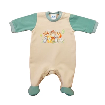 Belül bolyhos, hosszú ujjú baba rugdalózó – Állatos mintával Bársonyosan puha, meleg és kényelmes rugdalózó a mindennapokra. A belül bolyhos anyag kellemes hőérzetet biztosít, a hosszú ujjak és a rugalmas szegélyek pedig extra védelmet adnak a hűvösebb napokon. A vidám állatos minta játékos megjelenést kölcsönöz, amit a kicsik és a szülők egyaránt imádnak. Vállán és lába között patentos, ezért az öltöztetés és a peluscsere gyors és egyszerű. Előnyök Belül bolyhos, meleg és puha belső felület Hosszú ujj és rugalmas szegélyek a jobb hőtartásért Vállán és lába között patentos kialakítás a könnyű öltöztetésért Játékos, állatos minta Tartós, formatartó anyag Bőrbarát és biztonságos Nikkelmentes patentok – nem irritálják az érzékeny bőrt Termékjellemzők Anyag: 65% pamut, 35% poliészter Minőség: I. osztály Gyártás: Minőségi magyar termék A belül bolyhos, állatos mintás rugdalózó ideális választás a hűvös őszi–téli napokra: kényelmes, meleg és praktikus alapdarab, amelyben a baba szabadon mozoghat és jól érezheti magát.