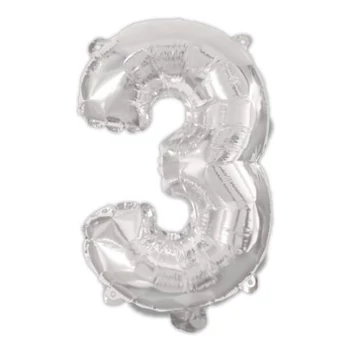 Silver, Ezüst 3-as szám fólia lufi 95 cm