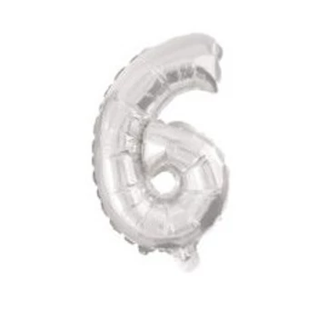 Silver, Ezüst 6-os szám fólia lufi 10 cm