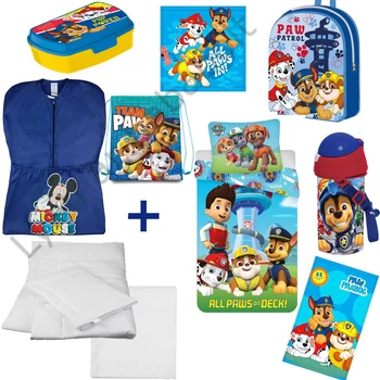 Mancs őrjáratos ovis zsák szett, komplett ovis kezdőcsomag, amely egy Mickey egeres ovis zsákból, hozzá illő Mancs őrjáratos tornazsákból és komplett pamut ovis ágynemű garnitúrából, valamint az oviban használatos, kiegészítő termékekből áll. Az ovis zsák nagy zsebes, elől cipzáros, vállfára akasztható, megfelel az óvodák által elvárt méretezésnek.