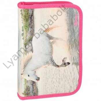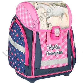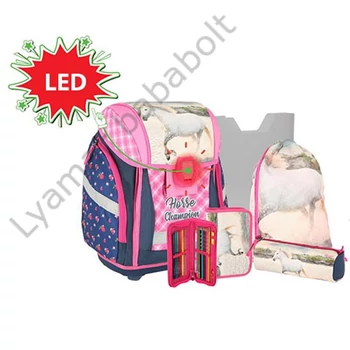 Iskolatáska szett, lovas mintával, LED-es csattal, töltött tolltartóval