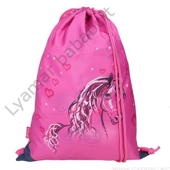 Iskolatáska szett, töltött tolltartóval, pénztárcával lovas mintával, LED-es csattal, 5 db-os
