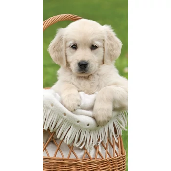 Kutyás pamut törölköző. A fürdőlepedő 70x140 cm-s méretben készült, jó nedvszívó képességű, finom tapintású, pamut anyagból. A törölköző a képen látható mintát adja vissza kiterítve teljes egészében. |