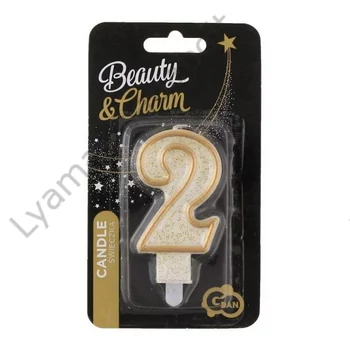 Gold, Arany csillámos számgyertya, tortagyertya 2-es