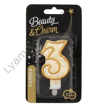 Gold, Arany csillámos számgyertya, tortagyertya 3-as