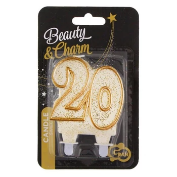 Gold, Arany csillámos tortagyertya, számgyertya 20-as