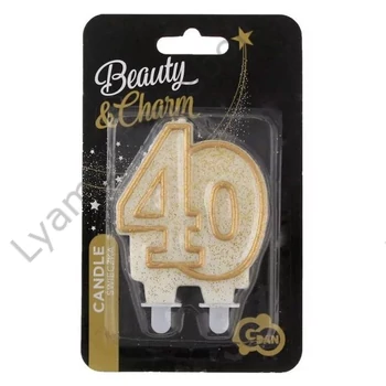 Gold, Arany csillámos tortagyertya, számgyertya 40-es