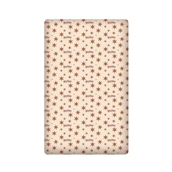 Stílusos Harry Potter gumis lepedő 90x200 cm-es méretben, barna csillagmintával és logóval. 100% pamut anyagból készült, bőrbarát és kényelmes. |