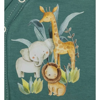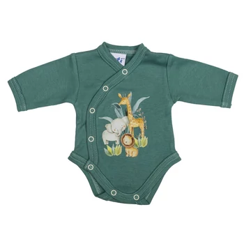 Elöl patentos hosszú ujjú baba body Szafari mintával Bájos és kényelmes viseletet kínál a kisbabádnak ez a szafaris mintával díszített, elöl patentos hosszú ujjú baba body. A termék zöld színű, ami könnyen kombinálhatóvá teszi más ruhadarabokkal. Minőségi magyar termék, melyet 100% pamut anyagból készítettek, így garantált a puhaság és a tartósság. Az I. osztályú minőség azt jelenti, hogy a legkiválóbb anyagokat használtuk fel a termék elkészítése során. Az elöl található patentok nikkelmentesek, tehát nem okoznak allergiás reakciót az erre érzékeny babáknál. Öltöztesd a kisbabádat stílusosan és kényelmesen ezzel a baba bodyval! Minőségi magyar termék Anyaga: 100% pamut, Minőség: I. osztály