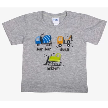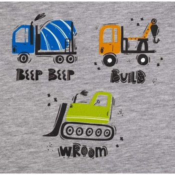 Rövid ujjú fiú póló munkagépek mintával Öltöztesse kisfiát ebbe a szürke rövid ujjú pólóba, melyet egy igazi kis kalandor számára terveztek! A póló kiváló minőségű, 100% pamut anyagból készült, mely puha, légáteresztő, és bőrbarát - azaz tökéletes választás a melegebb napokra. A mintája pedig izgalmassá és játékossá teszi a viseletet, egyben kiváló alapja lehet a játéknak és a tanulásnak is. A póló könnyen kezelhető, jól mosható, szín- és formaálló, így hosszú ideig megőrzi szépségét. És ami a legfontosabb: mindezt hazai gyártó biztosítja, így vásárlásával a magyar termékeket támogatja. Minőségi magyar termék Anyaga: 100% pamut, Minőség: I. osztály