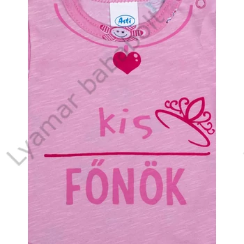 "Kis főnök" feliratos rövid ujjú baba body Ezzel a vállon patentos, virágos baba bodyval a kisbabád mindig stílusos lesz. A body feliratos, ami egyszerre vicces és aranyos. Az 100% pamut anyaga garantálja a kényelmet, és a nikkelmentes patentoknak köszönhetően nem kell aggódnod az allergiás reakciók miatt. Gondosan tervezett és készített termék, így biztos lehetsz benne, hogy a legjobbat kapod. A minőségi magyar termék, ami tökéletes választás minden unisex babáknak. Tökéletes választás, ha szeretnél egy igazán minőségi és kényelmes ruhadarabot a babádnak. Minőségi magyar termék Anyaga: 100% pamut, Minőség: I. osztály