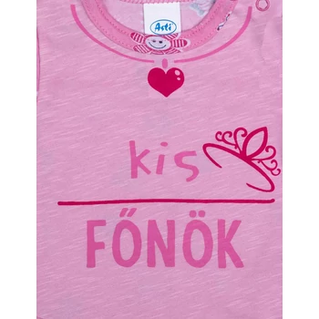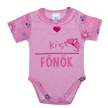 "Kis főnök" feliratos rövid ujjú baba body Ezzel a vállon patentos, virágos baba bodyval a kisbabád mindig stílusos lesz. A body feliratos, ami egyszerre vicces és aranyos. Az 100% pamut anyaga garantálja a kényelmet, és a nikkelmentes patentoknak köszönhetően nem kell aggódnod az allergiás reakciók miatt. Gondosan tervezett és készített termék, így biztos lehetsz benne, hogy a legjobbat kapod. A minőségi magyar termék, ami tökéletes választás minden unisex babáknak. Tökéletes választás, ha szeretnél egy igazán minőségi és kényelmes ruhadarabot a babádnak. Minőségi magyar termék Anyaga: 100% pamut, Minőség: I. osztály