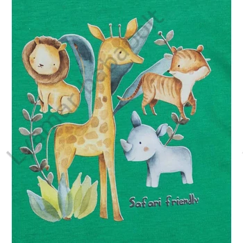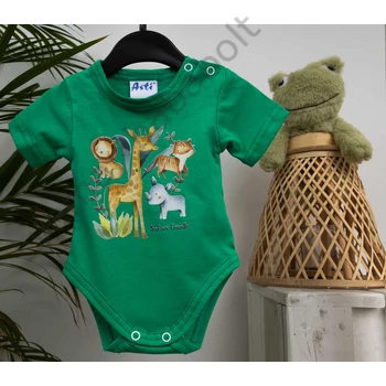 Rövid ujjú baba body Szafari mintával A zöld színű, rövid ujjú baba body vagány szafaris mintával varázsolja még édesebbé kisbabáját. A vidám szafaris minta garantáltan mosolyt csal az arcára minden kisgyermeknek és szülőnek egyaránt. Kiváló választás lehet mindennapi viseletként, hiszen könnyen kombinálható más ruhadarabokkal. A 100% pamut anyagból készült body puha, kényelmes viseletet biztosít a baba érzékeny bőrének, miközben megóvja azt az irritációtól. A termék könnyen tisztítható, nikkelmentes patenttal készül, így az erre érzékeny babák bőrét sem irritálja. Válaszd ezt a minőségi magyar terméket, amely első osztályú minőségben készült, és öltöztesd babádat a legjobbba! Minőségi magyar termék Anyaga: 100% pamut, Minőség: I. osztály